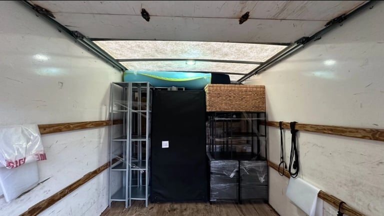 Check how our jobs look once everything is loaded: stacked, strapped, and protected.