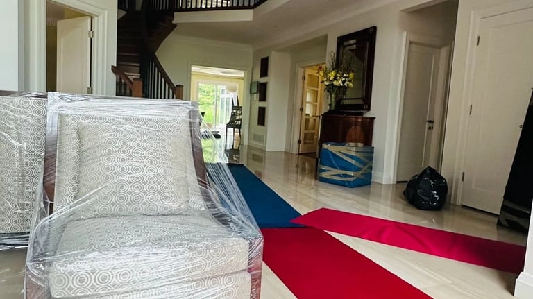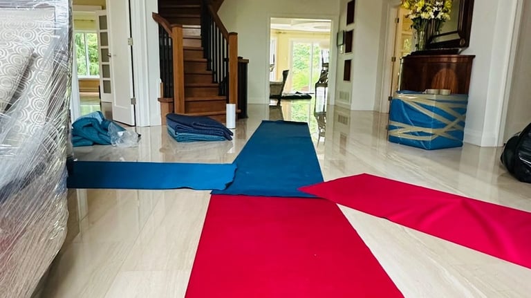 How we respect people’s homes: floor runners, door covers, rail protection, and careful handling.